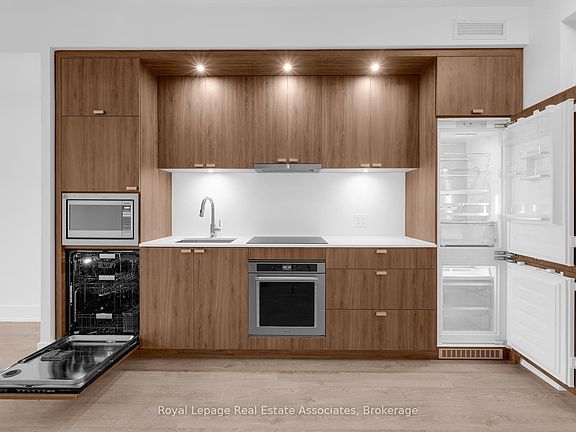 Floor-to-ceiling windowsWarm contemporary finishesAiry open-concept layoutStylish kitchenIntegrated appliancesSleek wood cabinetryFull-height backsplash
