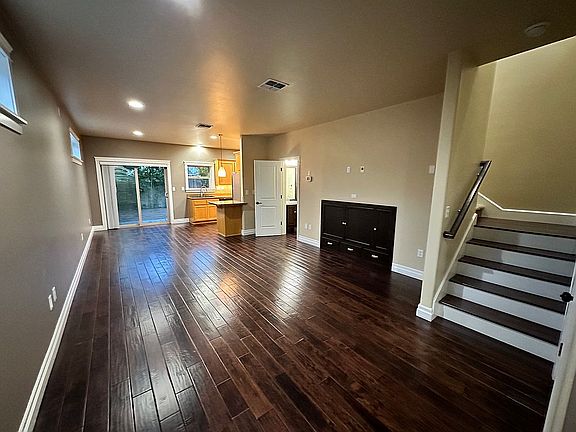 Townhouse in Central Point's Daisy Creek Village Quiet Neighborhood - 1/4 mile from Downtown Central Point and blocks from Mae Richardson Elementary School. 2 bedroom (2 master en suites), 2.5 bath, full kitchen, dining room, bonus living area, in-wall central vacuum system, forced-air gas heating, air conditioning, appliances. Granite, Tile, Hardwood throughout. FIRST FLOOR: Living room, Kitchen, Dining, Half-Bath, Bonus area. Hardwood flooring throughout. Living Room - built-in entertainment center. Kitchen - full size. Stainless steel/black appliances. Gas oven and range, dishwasher, large refrigerator/freezer. Granite countertops. Granite sink. Lots of cabinet/drawer space. Dining area - adjacent to kitchen. Includes small bar peninsula seating area at kitchen counter. Half-Bath - powder room Bonus Living Area (converted 1 car garage) - finished, insulated, carpeted. Includes 20' of full height custom storage cabinets. SECOND FLOOR: 2 Bedrooms (master en suites), 2 Full Bathrooms, Laundry. Master Bedroom (en suite) - Bathroom has tile flooring, granite countertop with tile backsplash, walk-in shower. 2 closets w/ organizer systems (one is a walk-in closet). Second Bedroom (en suite) - Bathroom with tub/shower. Closet with organizer system. Laundry closet off hallway - New washer and dryer. BACKYARD: Outdoor living area. Fenced, stamped concrete, pergola. Bamboo hedge and pergola create a private outdoor living space. Side yard with grass. Lease Duration: Month-to-Month Tenancy Required Up-front: $1700 security deposit (includes $200 non-refundable carpet cleaning fee) plus first months rent. Pets Policy: Not allowed Smoking: Not allowed Utilities Included: Garbage service / Sewer / Yard care Utilities Tenant Responsible For: Water / Electric / Gas Expectations: No Smoking. No Pets. Care for the home as if it were your own. Good communication regarding the property. Clean upon move out.