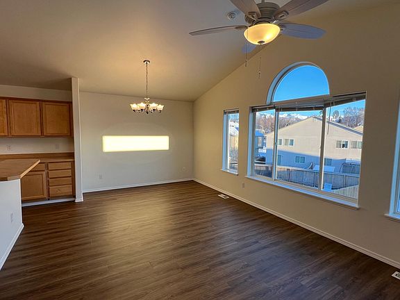 Beautiful East Anchorage townhouse off Turpin near JBER and Tikahtnu. Upstairs includes large open concept living room/kitchen with gas fireplace, vaulted ceilings, half bath and fantastic mountain views. Master bedroom is also located on the top floor and includes a large private master bath, walk in closet and west facing balcony. Downstairs includes laundry room, full bath, two bedrooms (one with back yard access) and access to 2 gar garage. No smoking. no pets. Tenant is responsible for landscaping and snow removal. Rent is $2,700 + All Utilities Schools are Ptarmigan Elementary, Clark Middle School and Bartlett High. Rental Qualifications - Gross monthly income of at least 3 times the rent - Good credit or credit we can be comfortable with - Good rental references Offered by Moveta Property Management at RE/MAX Dynamic Properties. Call today!