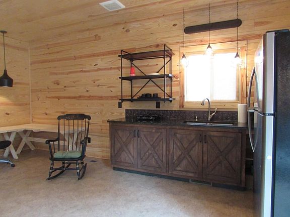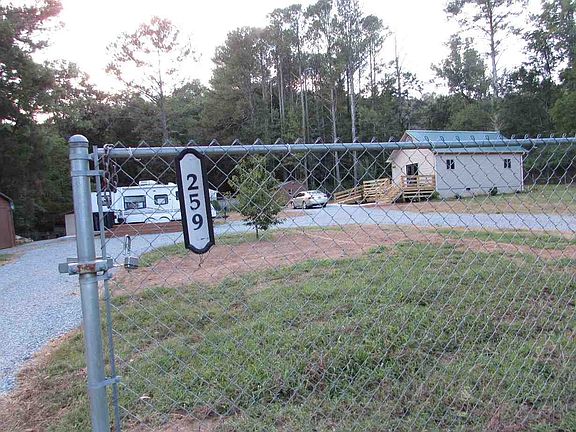 Welcome fisherman and friends! This one acre property features a 600 sq. ft. efficiency cabin and 4 camper hookups and two 10-feet gated entrances connecting a gravel driveway. The home is energy efficient w/ insulated walls, nickel gap pine interior walls, 2 ton HVAC system, ceramic tiled bath, granite countertops in kitchen with undermount sink, tankless water heater, thermal windows and doors, cork and bamboo water resistant flooring in main living area, underground connections to all buildings, outdoor lights with motion sensors, security system, block storage building, utility shed with power (could make into a bunk house or garden shed), detached garage for automobile and/or boat.