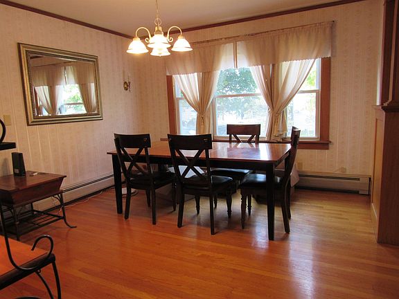 A Classic home with plenty of room for the entire family. New roof in 2023! Vinyl replacement windows, vinyl siding make this an easy home to maintain. Immaculately maintained, natural woodwork throughout. Pocket glass doors, built in lead glass china cabinet in dining/living room. 4 bedrooms, 2 and a half baths. Cedar closet in laundry room, built in ironing board. Two car garage, lovely-enclosed porch. Great central location. ATV/UTV from the garage to the trails.