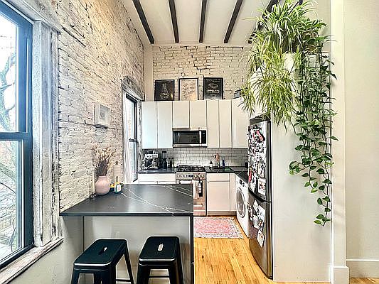 **One-of-a-kind loft-like one-bedroom apartment in Boerum Hill Washer and dryer in unit! **Beautiful skylight that brings tons of natural light into the apartment -Gut renovated -Amazing details -Exposed brick walls -Gorgeous skylight -12'5 ft ceiling with exposed wooden beams -Massive living room -King-size bedroom -Beautiful spa-like bathroom -W/d in unit -Brand new full-size kitchen with SS appliances Super easy commute - just a few min walk from Barclays center - 2,3,4,5,B,D,N,Q & R trains! For more information or to schedule a showing email/text Bar anytime!