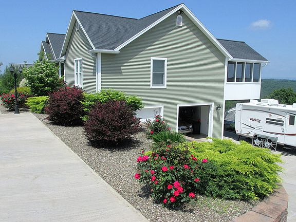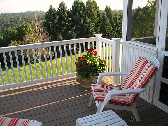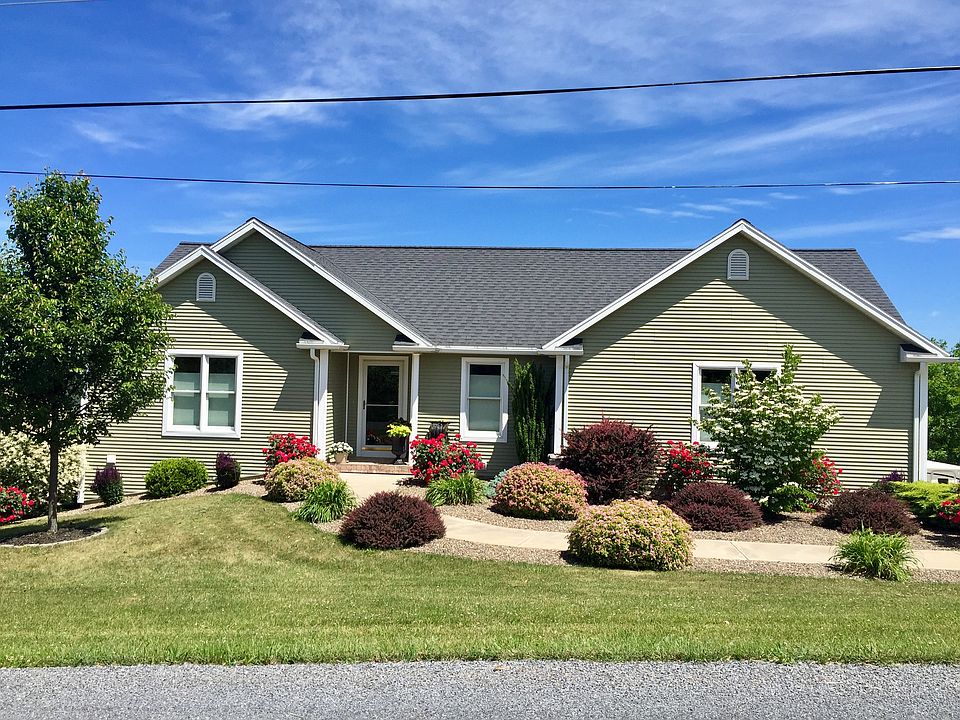 Impressive views!! Take a look at the mountainside from the back deck to enjoy the Autumn Days! This beautiful home offers an open concept, vaulted ceilings, master suite, central air and an efficient heat pump. The kitchen offers plenty of cabinet space, breakfast bar and you can walk out to the screened-in porch to enjoy a cup of coffee and the view! Plenty of parking with a two car garage and a concrete driveway. Two acres of land for your outdoor enjoyment! Sold AS-IS. Home Warranty transferable to buyer at settlement .