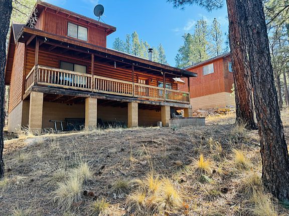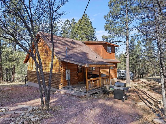 Welcome to your serene mountain retreat in Happy Jack, AZ—a single-family oasis that promises privacy, tranquility, and unmatched comfort. Nestled on 2.38 acres of beautifully treed land, this stunning property offers a homestead and sanctuary surrounded by mature trees, providing a natural sound barrier and a private ambiance that feels like a world all your own.As you step inside the main home, you'll immediately notice the wood covered vaulted ceilings, creating an open and airy atmosphere. The wood on some of the interior walls add a touch of rustic elegance, perfectly complementing the new vinyl plank flooring that extends throughout. The cozy warmth from the uniquely beautiful wood stove invites you to relax and enjoy quiet moments or lively gatherings with family and friends. Boasting two bedrooms and a bathroom downstairs, not to mention the very large private loft also for sleeping, an office, game area or more, this home is designed for both functionality and comfort. The floor plan seamlessly connects the living, dining, and kitchen areas, providing an ideal setup for entertaining or simply enjoying everyday life. Step outside onto the covered deck, where you can soak in the crisp mountain air and stunning natural views—a perfect spot for morning coffee or evening relaxation. If you have guests or need additional space, the detached above-garage living quarters offer a cozy retreat, complete with its own living area, bedrooms and bath so everyone has their private nook(This area is NOT included in the sq ft listed). The property's amenities don't end with the inside. A new private well ensures a reliable water supply, while ample RV parking provides convenience for traveling guests or outdoor adventures. The lot affords plenty of space for gardening, walking, or creating additional outdoor living areas to suit your lifestyle. It is a beautiful lot. Located in the picturesque community of Happy Jack, you're a drive away from Blue Ridge Reservoir for boating, fishing, and hiking pursuits, making this home perfectly situated for both seclusion and seasonal adventure. This a perfect haven whether you're seeking a peaceful retreat or a family home amidst nature, a weekend getaway, VRBO or full time home. This is a must to check out. Most furniture/furnishings will convey.