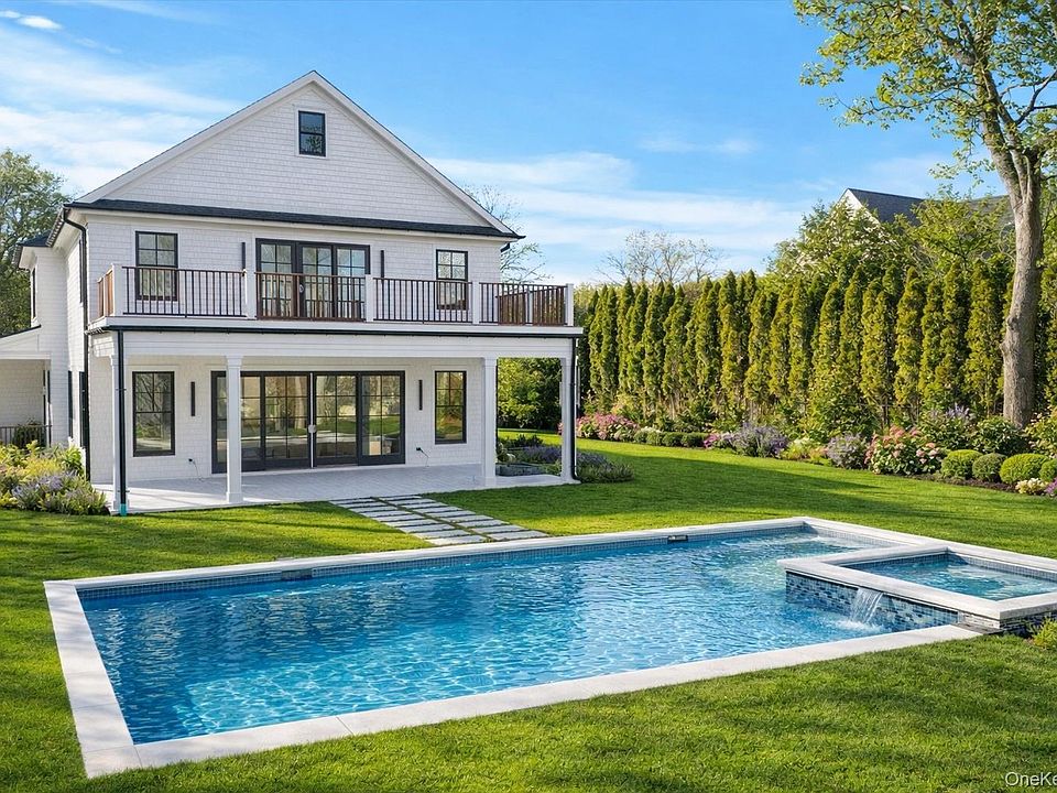 Brand new exquisite waterfront 6 bedroom, 7 bathroom home set on 1.33 acres along coveted Mattituck Inlet in the heart of the North Fork, this exceptional waterfront retreat spans approximately 5,920 square feet of refined living space, blending classic Hamptons-style cedar-shingle architecture with a sophisticated, contemporary interior. Designed for both elegance and everyday comfort, the home features an airy open-concept layout anchored by a dramatic great room with soaring ceilings, expansive Andersen 400 Series double-hung windows, and walls of glass framing panoramic water views. A Heat & Glo 36” propane fireplace with tranquil surround, LED lighting, fan blower, and multi-function remote adds warmth and ambiance. The chef’s kitchen is a true showpiece, appointed with full overlay cabinetry with glass-top cabinets extending to the ceiling, quartz countertops, and a premium appliance suite including a 48” Sub-Zero refrigerator, 48” Wolf gas range, 30” Wolf double wall oven, 24” Wolf microwave, and 24” Miele dishwasher—all stainless steel. The kitchen flows seamlessly into the dining area and outdoor entertaining spaces. The primary suite offers a spa-inspired retreat with radiant electric floor heating in the primary and junior primary baths, private terrace access, and serene water views. Wide-plank 7” plain-sawn white oak flooring runs throughout, enhancing the home’s warm yet modern aesthetic. Additional bedrooms are generously sized and thoughtfully designed for privacy and comfort. Outdoor living is exceptional, featuring a heated 20’ x 40’ gunite saltwater pool with jacuzzi, surrounded by imported Marmiro Stone (Afyon Cloud) patios, a mahogany primary deck, covered porch, and landscaped grounds serviced by a 10-zone Hunter irrigation system. The property includes metal and cedar fencing, a private dock, and direct waterfront access—ideal for boating and waterside living. Additional highlights include state-of-the-art, energy efficient, multi zone HVAC (every bedroom and common area has its own thermostat - the system has multiple fans for dedicated zones), central air, public water, septic system, a two-car garage, cedar shingle roof and siding with white double-dipped finish. Surrounded by vineyards, farm stands, and pristine North Fork beaches, this extraordinary waterfront estate delivers modern luxury, timeless craftsmanship, and the relaxed elegance of Long Island’s wine country—an unparalleled opportunity for refined coastal living.