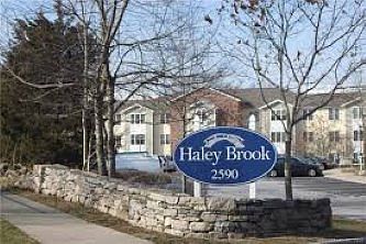 Haley Brook Condominiums,a 55 and over active Community. A freshly painted, light, bright,and cleaned, unfurnished end unit 1st floor. Kitchen with full appliances, large Fridge, Range/oven, above Range Microwave, double sink with Garbage disposal, and Dishwasher. Ample Living/Dining area, and Bedroom. Large Bathroom w shower/tub combo, Large Mirror, and in-unit Washer/Dryer combo. Large secure Basement storage unit, Central Heat/AC. Amenities include Community Room with Big Screen TV and Kitchen, Fully equipped Exercise Room, Library, Billiard Room, and more, all abutting Haley's Brook on private grounds. Minimum age for lessee 55 years. HOA maintained services. Direct contact via phone, or email with owner's representative by prospective renter, as well as in-person interview, and property viewing prior to any application consideration required. Minimum Lease One (1) Year with renewal option. Owner pays for water, Renter pays for Utilities, (Gas & Electric). 1 pet limit. Security + First & Last Months rent required. Credit check, Renters insurance, and references if any required.