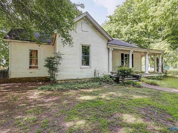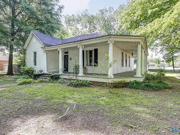 Welcome to the this charming Neoclassical cottage! A unique historical home nestled on a corner lot in the heart of the up and coming town of Courtland, Al. Built durning the late 1800's, and well maintained throughout the years.The many completed renovations include new windows, electrical system,HVAC and a new roof in 2019. The wrap-around porch leads to rich hardwood floors, high ceilings, and original fireplace details. The large living and dining rooms open to the sunroom and bright kitchen. The first floor has three spacious bedrooms, two with updated en suites, charming built-ins, and a half bath. Home to Courtland's first mayor, the detailed history adds to its charm and character.