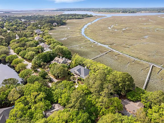 Every home on Jenkins Pt. capitalizes on the view, but few can compare to this exquisite home situated on Horseshoe Creek with unparalleled and sweeping views of natural marsh, Bohicket River, Rockville and the shrimp boats. Enjoy water access with shared dock and private boat deck.This custom built home exudes Charleston charm with brick and wrought iron accents. The open floor plan is light and bright featuring soaring ceiling and perfect entertainment areas. Large gourmet kitchen is equipped with double ovens, double cooktops, double pantries, Jenn Air grill, built-in recipe desk and abundant cabinet & counter space.The primary suite features gorgeous marsh views, gas fireplace, luxurious bathroom with double vanities, jetted soaking tub, walk-in shower and immense closet area.Additional highlights include a billiard room, secondary guest bedroom suite, office/third bedroom with guest bath, built-in shelving and putting green. Lower level provides ample storage, a workshop and parking for multiple cars, boat, golf cart and your favorite grown-up toys. Rear balcony is built to enjoy all the Low Country has to offer and is surrounded by majestic live oaks, native wildlife and picturesque beauty.