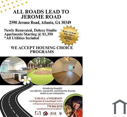 Newly Renovated and Spacious Studio Apts Gated Community Back by popular Demand!! with more than ever to offer! Large Chic Studio Apts in gated community. Zen community garden and onsite Laundry facility ALL utilities included. Directly connected to bus line. Housing choice Voucher Programs Accepted: DCA Vouchers, East Point, College Park, View Point, GA Housing Criteria: Criminal and Credit check required, NO eviction within 6 years, Rental history must be satisfactory, Will consider pets- No vicious breeds. You make a house your home .. For more properties like this visit Affordable Housing.