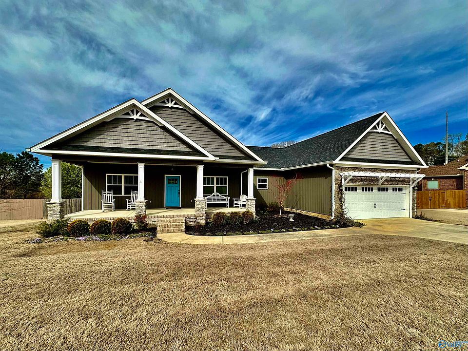 Like New 3br 2ba home, in desirable Legacy Farms, consisting of a light & airy 1763sf+/-, nestled on almost a 1/2 an acre of beautifully landscaped outdoor spaces w/ flowering plants, trees & shrubs! Enjoy sunrises on the front porch & sunsets on the screened in back porch. The open floor plan features tall ceilings, crown molding, Brokay ceilings, LVP flooring throughout, large windows, recessed lighting. The kitchen boast stainless steel appliances, granite countertops, center island & tons of cabinet space. The Owners Suite is Amazing! Wait til you see the 106sf Walk-in Closet! Plenty of storage throughout, large 2-car garage w/ attic storage. Just 2 miles to public launch on Neely Henry.