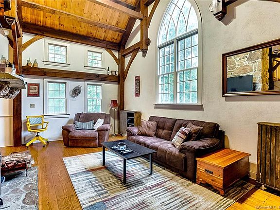 Great opportunity to own this custom built Post and Beam Home on private 3.71 acres on beautiful setting with stone walls and babbling brook. This home offers timeless charm with the look and feel of a historic home with its wood shingle roof yet is less than 20 years old. The high ceiling with exposed beams and the large restored Church window allowing the light to shine through, just makes it cozy regardless of the season along with the open expansive spaces and pine floors add to the charm. The kitchen was brandished a year ago with a new custom backsplash, new refrigerator, concrete counter and farm sink. Living room with wood stove insert surrounded by beautiful floor to ceiling stone work. First floor master bedroom with fireplace. First floor master bath was remodeled and includes the custom installation of the all-glass shower with subway tiles and river rock flooring is one of a kind complimented by the oil-rubbed bronze fixtures. Second floor bedroom has full bath. New outdoor patio with fire pit will become second living space overlooking the property. In addition, there is a spacious shed. The large barn is 2 story post and beam construction with underground electric, wood stove and the upstairs was converted to a gym but would also make a great work shop. This is truly a special retreat home that offers privacy and quietness yet is close to everything.