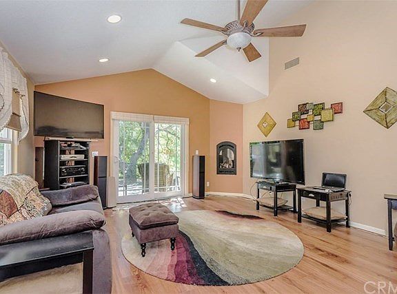 You own your own solar panels at this warm and inviting home with luxurious updates. Light and bright - this spacious home is perfect for entertaining or relaxing on the tree-covered patio that backs to an open-space greenbelt. This home has vaulted ceilings, large dual-paned windows, ceiling fans, a living room fireplace - all which create a peaceful happy ambiance. The kitchen is a central gathering place of this home with its circular floor plan, pantry, added lights, and island bar with cooking and seating levels. The master bath has a jetted tub, walk-in shower, and dual vanity. You'll find designer touches throughout the home - beautiful blinds and window treatments, glass and Mahogany front door, stainless steel appliances, accent tiles, pedestal sink, lots of closet space. Outside the home you'll sit on your private view patio with room for BBQ and garden areas. You even own your own propane tank which allows you to buy propane from any company. In front you'll find space to park your boat or RV - in addition to the large two-car garage. Be sure to see the Virtual Tour with many more photos!