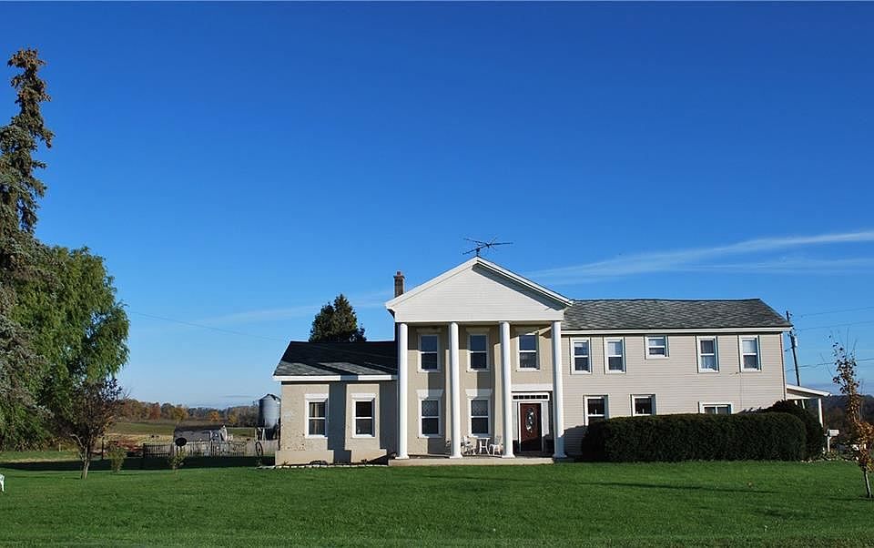 **Open House Cancelled** Pride in ownership shows in this c. 1860 historic brick Colonial known as The White House. Classic character and charm with modern conveniences - featuring natural hardwood floors, high ceilings, formal dining room and spacious gourmet kitchen. Grand living room is warmed by gas fireplace. Large master upstairs with 3 add'l bedrooms & full bath. All new windows, newer furnace & hot water heater. 3.5 acres w/ 80' x 110' pole barn for agriculture, livestock, workshop or storage needs. Enjoy your morning coffee on the porch in this quiet country setting.