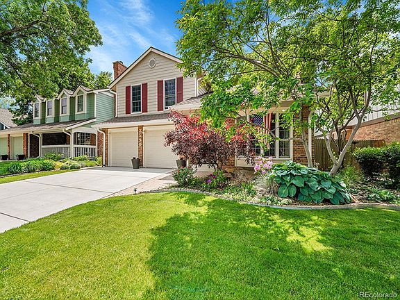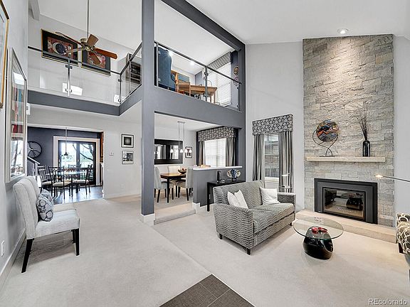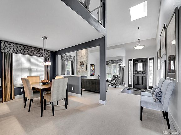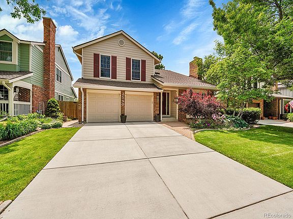 Waterfront elegance meets everyday comfort in this stunning 3-bed, 3-bath retreat tucked in the coveted Southpark community, with panoramic reservoir views that turn daily life into a serene escape! A beautifully landscaped front yard adorned with a striking purple-leaf plum tree sets the tone for the home’s apparent charm. Inside, vaulted ceilings and sweeping natural light accentuate the open floor plan. Bathed in natural light from a skylight, the living room features a striking gas fireplace framed by floor-to-ceiling white ledger stone, seamlessly transitioning into the formal dining room with a large window and modern lighting. The kitchen is a culinary delight, featuring warm wood cabinetry with built-ins, quartz countertops, Bosch stainless steel appliances, and an interlocking glass mosaic backsplash. A cozy breakfast nook overlooks the backyard, offering serene reservoir views. The nearby family room, with its gas fireplace and expansive windows, provides a warm and inviting space for relaxation. Upstairs, the primary suite serves as a serene retreat with dual skylights and ample natural light. The newly renovated ensuite bath is equipped with double sinks set in rich wooden cabinetry, a modern glass standing shower with mosaic tile flooring, and a convenient laundry area. Two additional bedrooms share a stylish full bath, while a nearby loft or flex space offers outstanding office potential. Step outside to a backyard oasis featuring a raised deck with multiple seating areas, an attached pergola, custom patio railings, slate stone walkways and pristine landscaping, all with an incredible waterfront view! Enjoy amenities including an Olympic-sized swimming pool, sport courts, clubhouse, and walking trails. Close proximity to Aspen Grove shopping, Breckenridge Brewery, The South Platte Trail, the light rail, Writers Vista Park and major highways like C-470 for mountain adventures!