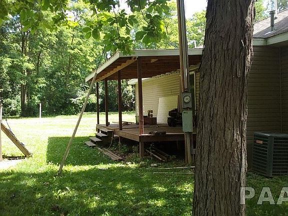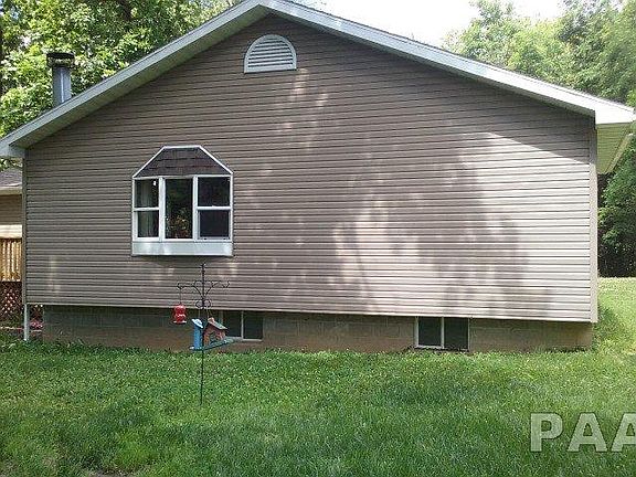 Nice property... Original structure is a manufactured home w/ 480 sq. ft. addition w/ basement. Situated on 2 lots. 9X11 office decorated in camouflage. Main floor laundry w/ built in table that could be used as a desk. FP mantel is made from a hickory tree on property. Circle drive around house. Cherry and apple tree. Appliances stay not warranted. $1000 allowance to buyer for siding for garage. City owned leased lot $246 per year. Owner is a licensed Realtor. Unable to verify year built. Owner is currently finishing remodeling projects. Will be completed before closing.