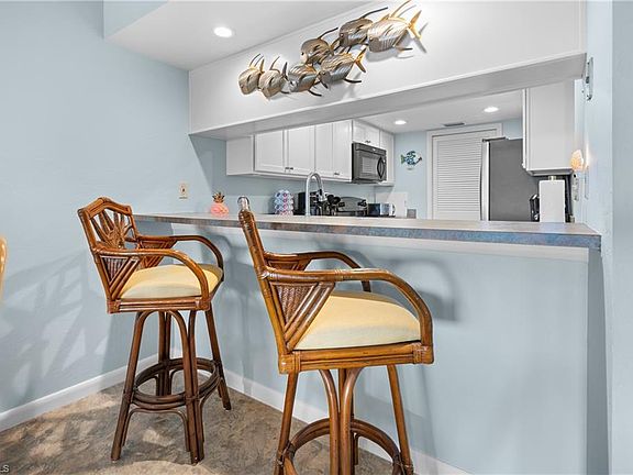Pricing depending on month of booking. Situated on the bay and directly across the street from the sugary white sand and sparkling blue waters of one of the Gulf of Mexico's finest beaches, this 2-bedroom, 2-bathroom condo offers the ultimate coastal lifestyle. With a 7-mile deeded beach access just steps away, you can enjoy uncrowded, tranquil beach days at your leisure. Inside, you'll find a bright and open floor plan, beautifully accented with light coastal tones and large windows that bring in the natural beauty of the surroundings. The updated kitchen boasts crisp white cabinetry, modern appliances, and plenty of counter space, ideal for preparing meals after a day in the sun. A charming breakfast bar provides additional seating for casual dining or entertaining. The spacious living and dining areas flow seamlessly and open to a private screened lanai, where you can take in stunning views of the bay, relax with your morning coffee, or watch the sunset paint the sky. The primary suite is a peaceful retreat, complete with a king-size bed, access to the lanai, and an en-suite bathroom. The second bedroom is equally inviting, perfect for family or guests. Community amenities include a sparkling pool overlooking the bay, providing a serene setting to cool off or unwind after a beach day. With its unbeatable location and private deeded beach access, this condo is a rare gem on Hickory Island. Whether you're kayaking on the bay, fishing, or simply soaking up the sun, this property offers everything you need for a relaxed, coastal lifestyle. This HOA requires a monthly minimum stay length. HOA paperwork can take up to 20 days for approval.