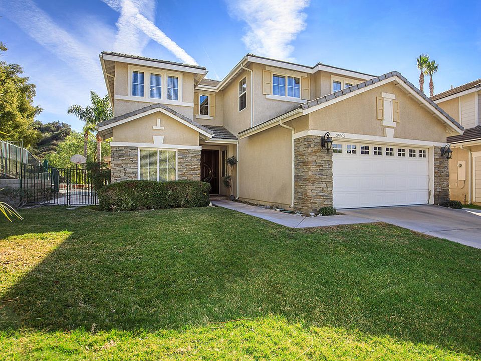 First time ever on the market! This gorgeous Pacific Ranch entertainer's home boasts one of the mots ideal floor plans in Stevenson Ranch! Located on a prime lot at the end of a tranquil cul de sac with homes on only half of the street making for excellent parking, no rear neighbors, stunning mountain views and tons of privacy! This lot is one of a kind with a sparkling pebble tech pool and spa, waterfall, half basketball court, putting green, built in BBQ, fire pit, and plenty room for kids and pets to play! The chef's kitchen overlooks the picturesque views and breathtaking backyard, boasts a huge center island, tons of storage, double ovens, butler's pantry and is open to the inviting family room. The separate formal dining room, luxurious living room with step down entry and custom double doors make a statement your guest will not soon forget! There is a FULL DOWNSTAIRS BED and BATH PLUS a main level OFFICE or possible 6th bedroom! The spacious downstairs laundry room is ideal for pool homes! Upstairs you will find 3 spacious bedrooms and a beautiful office that overlooks the first floor! The master suite is incredibly private with romantic fireplace, incredible views, opens to the oversized balcony which gazes over the stunning yard and mountain views! The master bath has recently been remolded with a spa like shower, dual sinks, jetted tub, his and hers vanities, enormous walk in closet! This is a home you will keep in the family for years to come!