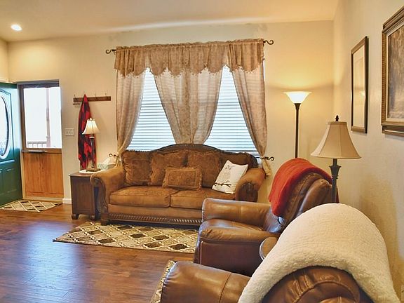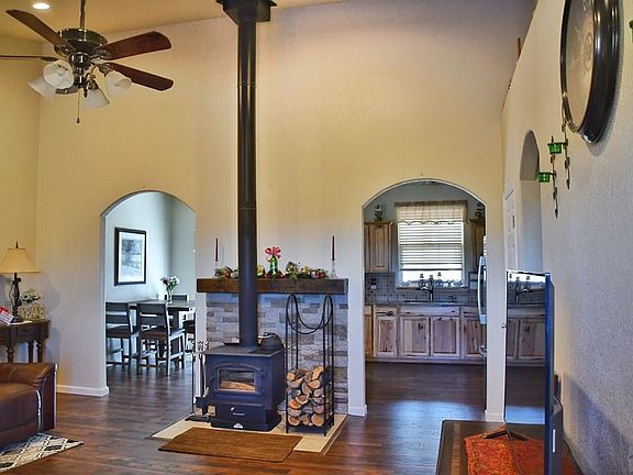 This is a must-see! All new hardwood floors in the living room, kitchen, and dining area! The large great room has a free-standing fireplace and accent shelving. The open kitchen, dining area has an eat up bar, stainless steel appliances, and granite countertops. The master bedroom has plenty of space and an adjoining 5 piece ensuite and walk-in closet. The two additional bedrooms are on the opposite side of the house from the master and have a full bathroom in the hallway. The enclosed porch has been finished and has a heating source if you choose to use it in the winter. There is a 2000 gallon cistern for the well to pump into for water storage. .The well is producing 2 GPM so on average should produce 288 gallons per day. There is an attached two-car garage, storage shed, and a fenced area for dogs. The home is built on the highest point of the 35-acre parcel offering amazing mountain views.