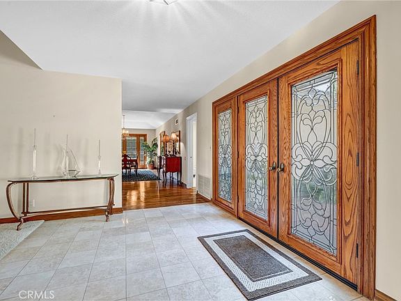 This beautiful 4-bedroom, 3.5-bathroom single story home, has approximately 3355 square feet of well-designed living space. Resting on close to a half-acre lot, this single-story home with generous outdoor areas, lush yard, fruit trees and golf course view is a rare gem in the community. A perfect place for indoor-outdoor living and entertaining. Upon entry thru a private courtyard, you will be greeted by leaded glass doors that open to a light and bright formal living room featuring a cozy fireplace and French doors that flow to the back patio and stunning back yard. The spacious Kitchen leads to a breakfast nook and opens to the family room. The bright and airy family room presents a relaxed setting with a lovely wood beamed ceiling, natural light from all directions, and sliding doors leading to the patio and yard. The large dining room can accommodate an oversized dining table, creating an entertainer's dream space. The sizeable main bedroom has an in-suite bathroom with separate tub and shower, double sinks, generous closet and French doors that lead to a separate patio area. There are 3 other generously sized bedrooms, one with a connecting bathroom. The home also has an inside laundry room with sink. Sitting on a single loaded street with street parking, the attached spacious 3 car garage and good-sized driveway allows for ample parking convenience. Desirably located close to schools, shopping, and freeway access.