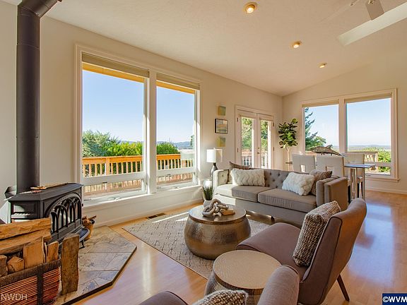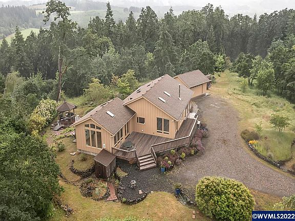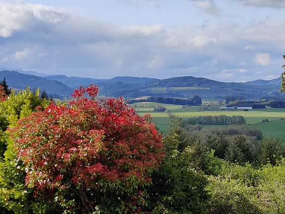360° Mountain/Valley Views! Light-Filled, Custom-built contemporary home. 5 private acres. Woodland trails, gardens, wrap around decks. Soaring windows, skylights. Chef's kitchen. Spacious open living, dining. Jotul woodstove. 400+sq.ft. Great Room. Master suite: private deck, jetted bath, walk-in shower, Sauna-ready. Energy-Efficient HVAC. Security system. ADU space. RV & Boat parking. Minutes to Finley Wildlife Refuge, Wineries, Art Center, Library, Schools, Parks, Restaurants, Health Center.
