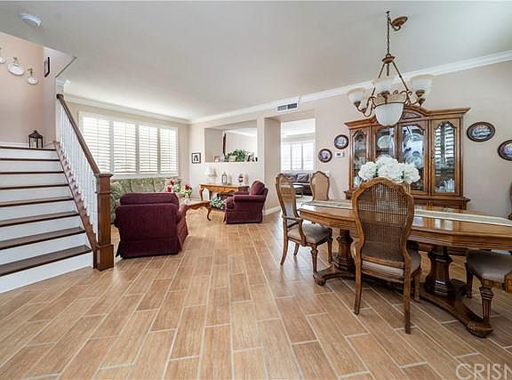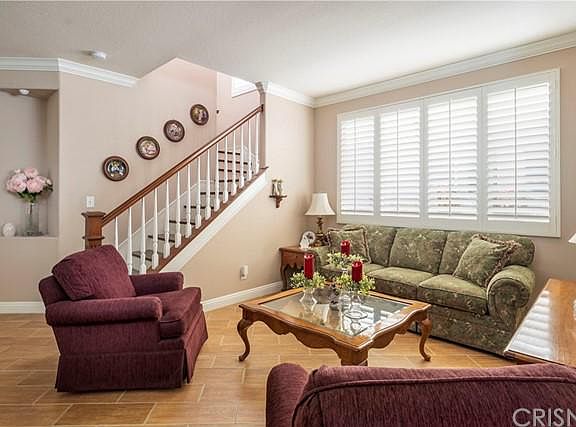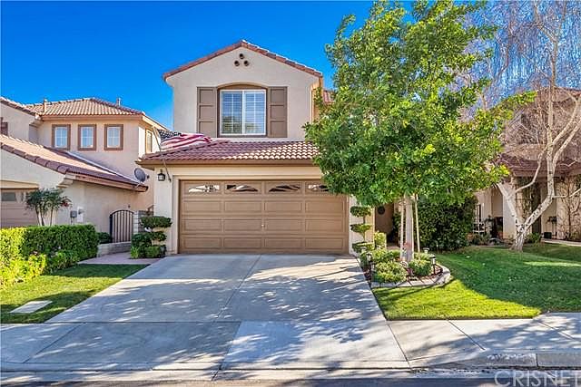 Absolutely wonderful, Move-in ready home in Stevenson Ranch! This beautiful home features 3 bedrooms, 2.5 baths with a large loft! As you enter this super clean home you are greeted with the formal living room and dining room that flows easily into the custom kitchen with large island that includes seating for 4. The family room features a cozy fireplace where family or guests can relax and be a part of what is happening in the kitchen. Step out into the delightful backyard with two seating areas and built in BBQ. Watch the spring come alive with beautiful roses and flowers. Upstairs enjoy a loft with TV area and the 3 bedrooms, including the large primary bedroom with private bath. This home has a newer HVAC system, beautiful plantation shutters throughout as well as gorgeous flooring. Direct access 2 car garage w/storage. This home truely shows pride of ownership throughout! The Stevenson Ranch neighborhood has award winning schools and a large park with access to tennis, basketball, running track and playgrounds.