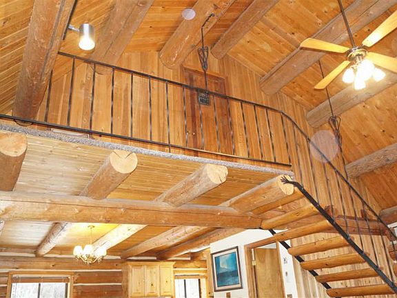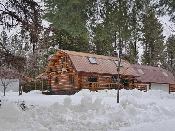 BEAUTIFUL HAND-HEWN LOG HOME tucked away in the pines on 27 private acres just minutes from Summit Valley. Home affords slate entry, vaulted living room ceilings, wood floors, spacious dining area, space efficient kitchen, and loft bedroom that gives you the warmth you come to expect in a true log home. Full basement, covered deck, attached 860 sq ft garage, and new detached shop with concrete floor, 12 ft door and attached lean-to for extra storage & toys.
