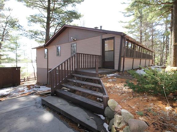 Sunrise Views over Northwestern Wisconsin Lake! Great fishing, swimming with access to larger water. Walkout Basement with easy access to the lake. Towering Pines with Maple mixed. 3 Bedroom, 2 Bath on private road. Large 3 Season room overlooking the water, perfect for entertaining. Open concept Kitchen and family room. Plenty of storage and space for the entire family. Hard to find at the right price!