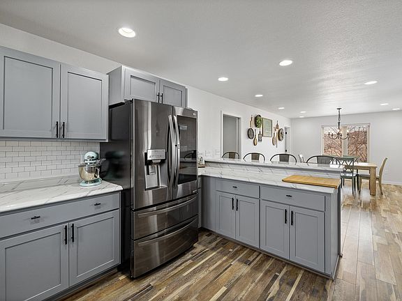 Listed by Cheri St. Pierre, Broker - Berkshire Hathaway HomeServices Midwest Realty. Immaculate ranch home with fantastic curb appeal, pristine landscaping, and impressive Hills views on just under an acre! Eat-in kitchen is a chef's delight with a wrap-around countertop highlighting space for 4 barstools, plenty of cabinets, stainless steel appliances, striking laminate wood flooring that extends to the substantial dining area and throughout the whole house. Lovely living room showcasing a vaulted ceiling & streaming in natural light. 3 spacious main floor bedrooms & 2 full bathrooms, including a dreamy master suite with vaulted ceiling & private bathroom. Expansive walkout basement hosts a large family room with access to the sprawling patio, 4th bed, workout room/office & 3rd full bath. The additional room on the lower patio can serve as an enclosed patio or potential hot tub room. Enormous deck overlooking the gorgeous rolling Hills. Attached heated 3-stall garage. The neighborhood has trails, park, basketball court & a pond perfect for fishing or turtle scouting!