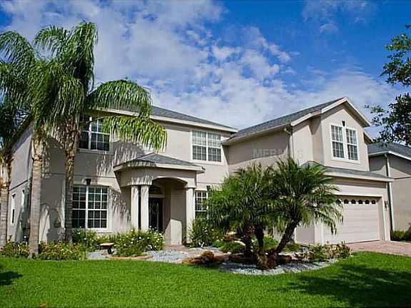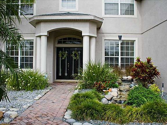 Not a short sale. From the moment you arrive the quiet cul-de-sac and spectacular landscaping, complete with a custom water feature will win you over. The gorgeous curb appeal welcomes you as you enter the double glass entry doors into the open and spacious foyer. The front of the home is graced with formal living and dining room spaces. The formal living room is complete with French doors providing style and privacy. The formal dining room has distinctive architectural features such as columns and chair rail. The spacious, eat-in kitchen is the heart of this family home. It is complete with high end, flat panel cabinetry, upgraded appliances and a huge breakfast bar that opens to a gracious family room with double French doors leading onto your covered screen enclosed patio. Your covered lanai is the perfect setting for all of your outdoor dining and entertaining without the hassle of flying insects. Black, maintenance-free fencing surrounds the open pool deck with resort style pavers and Grecian style pool, perfect for doing laps. The pool comes complete with solar heater which allows for swimming enjoyment nearly year round, as well as a gorgeous waterfall with shooting water feature for a luxurious visual interest piece in your outdoor space. The guest suite is located just adjacent to the cabana bath, with custom tile work and spacious shower as well as an easy step down shower for convenience for all family members. Brand new carpeting has just been installed in the family room and staircase.