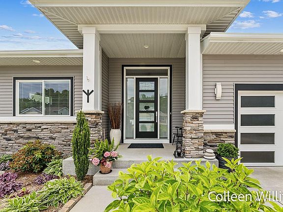 "Arizona style" rock landscaping with drought-tolerant plants, soffit lighting all around, and a concrete walkway leading to the backyard. Residents of Odeno enjoy peaceful winding roads, wooded trails, and a serene community pond with a lighted fountain. Conveniently located near shopping, Lake Michigan, Hoffmaster State Park, freeways, and recreational amenities, this home is within the esteemed Fruitport Schools district. Chandelier in foyer not included in purchase. Chandelier in living room can be purchased outside sale of home.