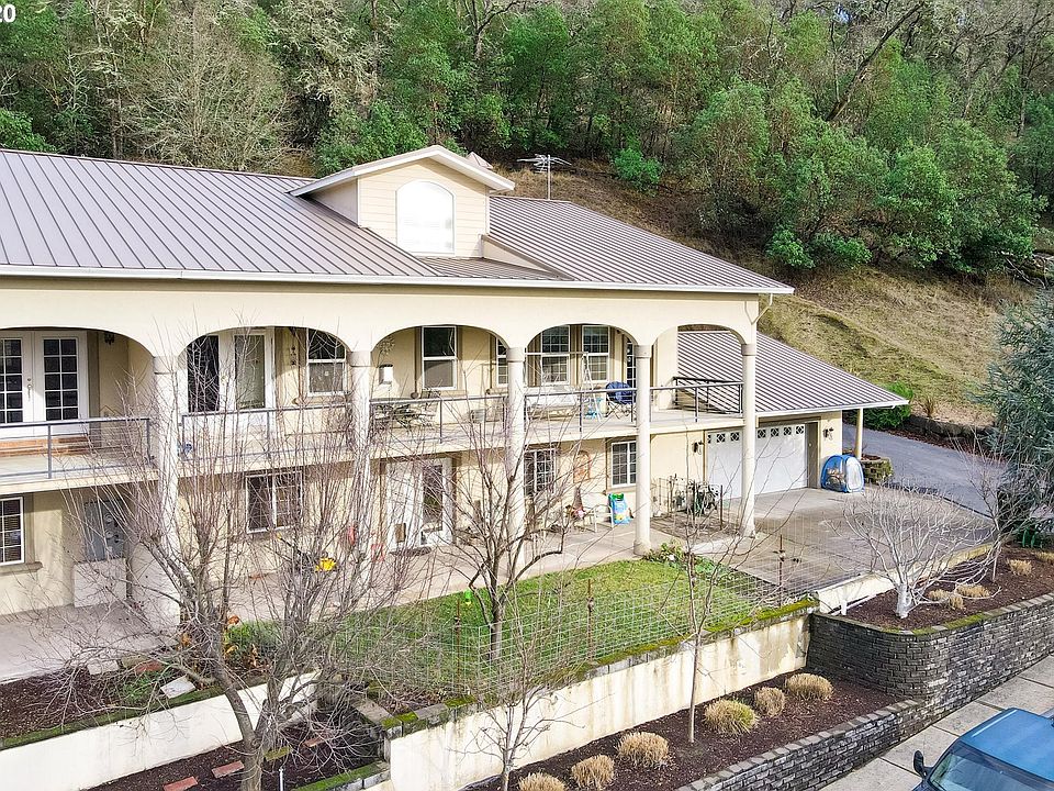 Beautiful home in the SW Roseburg hills. 3128 sqft, 3 bedrooms with 3.5 baths. Huge chef kitchen with granite counter tops, Jenn-air range 6 burner gas range and lots of cabinet space. Master bathroom with tile step in shower and Jacuzzi tub. Amazing city and mountain views from large back patio, accessed through French doors with gas line for outdoor bbq or kitchen space. Vaulted ceilings throughout. Superior concrete wall construction with stucco siding and standing seam metal roof. Downstairs with wet bar and media room. Built in stereo system throughout home. This property would be great for an in-law or multi-family setup with the separate entrance downstairs as well as the full bathroom & kitchen in the garage. Garage is finished and could easily be converted to living space. Must see to appreciate the amazing craftsmanship throughout. Property next door also listed under MLS#2966070 and the entire property can be purchased together under MLS# 2966074.