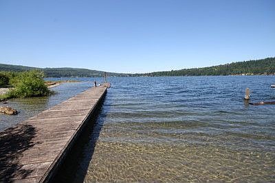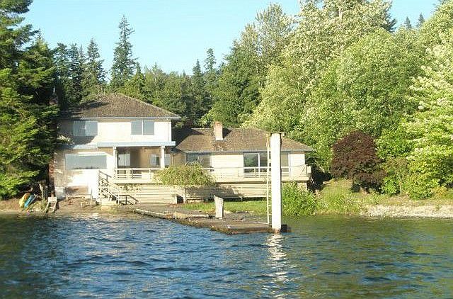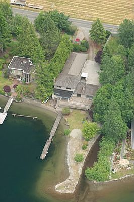 120 feet of sandy, low-bank waterfront on the SUNNY side of the lake! 2800 sq. ft . home, 4 car garage, large footprint. Stunning lot nestled up against a creek with total privacy and wind- protection.