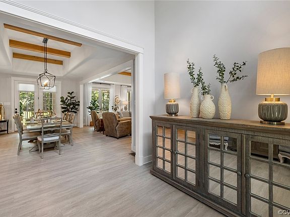 - Beamed Ceilings, Bookcases, Built-in Features, Ceiling Fan(s), Cathedral Ceiling(s), Dining Area, Fireplace, Granite Counters, High Ceilings, Kitchen Island, Main Level Primary, Pantry, Recessed Lighting, Walk-In Closet(s)