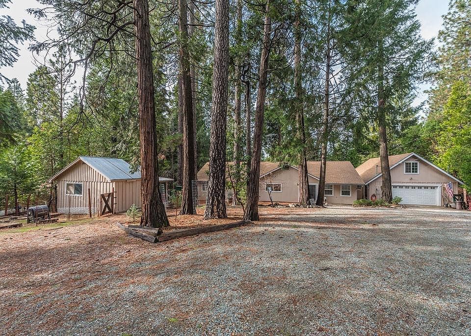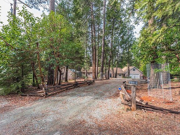 Parklike, level and private parcel with a spotless single level 2 bedroom 2 bath house remodeled in 2002 and a small guest cabin. Master suite with shower, jet tub, double lavs, vaulted ceiling and skylight. Spacious laundry room, central heat & air, and fireplace with gas log insert. Cabin with knotty pine interior, propane heat & half bath. 936 square foot garage with radiant heated floor and large attic area for storage. 5 minutes to grocery store and other conveniences. Close to golfing too.