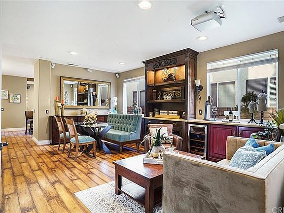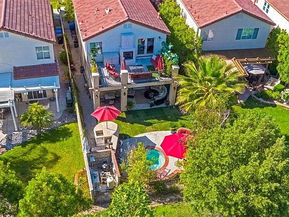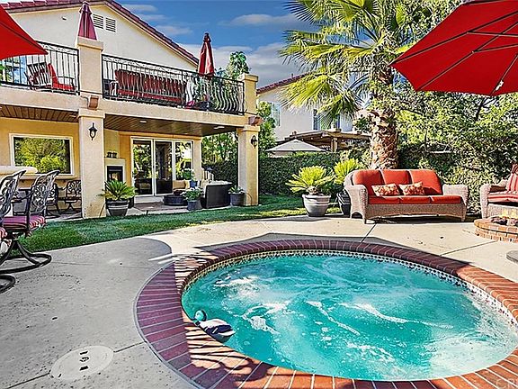 ENTERTAINER'S HOME!! Prestigious Stevenson Ranch community has easy access to the freeway, is close to shops and restaurants and benefits from having award winning K-12 schools, including the 3 time awarded distinguished blue ribbon elementary school. Backyard upgraded with in-ground spa, firepit, built in BBQ and bar, and California room with fireplace. This cul-de-sac location upgraded home is move in ready, with wood like flooring, freshly painted and is a Smart Home with Lighting throughout the home and outdoor spa controlled remotely. There is an open formal living and dining room and huge loft with projection screen built into ceiling. The great room has a kitchen with center island, stone counters, and stainless steel appliances, it's open to the dining area with pass through window for entertaining and family room with charming fireplace, built in bar with refrigerated drawers, and upgraded Accordion doors to the California room and spectacular yard. There is a downstairs bedroom and bathroom. Upstairs the master suite is its own retreat, with sitting area, master bath, walk in closet, and own private balcony with beautiful views and fireplace. There are two further bedrooms, guest bath and laundry upstairs. This home has flexible floorplan to accommodate all of your needs. Come see for yourself!