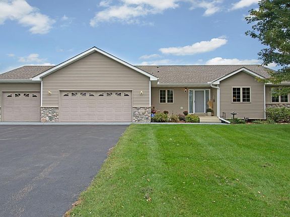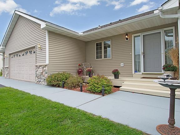 Come home to this beautiful walkout rambler in a quiet neighborhood. This home overlooks a gorgeous pond that is perfect for kayaking and ice skating. Stunning views of the wildlife from the multi-level deck with pergola. Heated and insulated 3-car garage. This home features 6-panel doors, Whirlpool tub, built-in dresser, in-ground sprinklers, abundant storage throughout the home! Cozy up to the gas fireplace in vaulted living room. Large family room in lower level walks out to the patio and fenced back yard.
