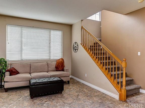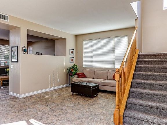 Stunning Stevenson Ranch Pool Home- This warm and welcoming three bedroom, three bath home shows light and bright. The well-appointed kitchen features a butcher block center island, newer stainless steel appliances, is open to the family room, and amazing backyard. The backyard has been skillfully designed with custom stamped concrete, hand cut rock pool, pebble tech plaster, and built in rock entertainment area. The outdoor entertainment area features, built in BBQ, refrigerator, seating to enjoy the chefs meal as it is prepared, and a built in umbrella to keep you cool as you savor the day. The impeccably designed patio cover features a built in ceiling fan to handle those warm days and evenings spent enjoying your entertainerâEUR(tm)s backyard. This pool is also kid friendly with a complete fencing system that is easy to put in and take out! Upstairs features three bedrooms and two baths, laundry area, and a large loft that could be converted into a fourth bedroom. Complete with newer Carpet & Flooring, Custom Baseboards, Energy Saving LED Recessed Lighting, Solar, and Security System, this cul-de- sac home is a must see!