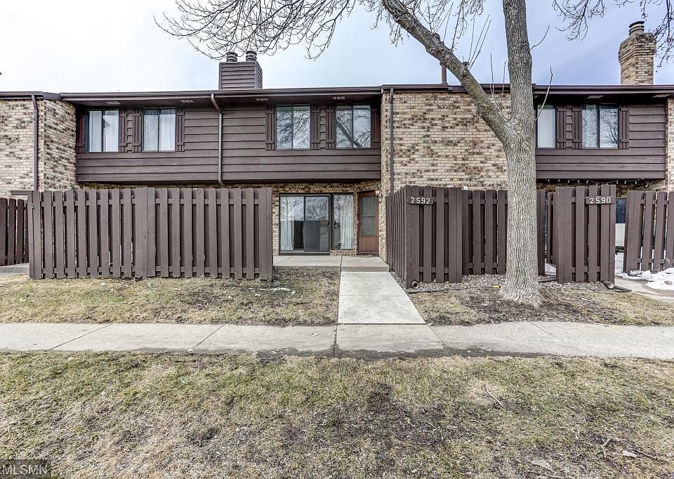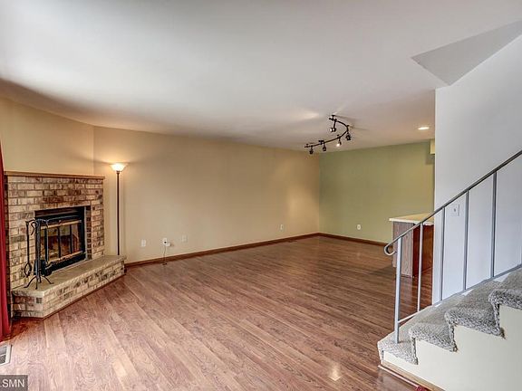 Tucked away in a superb Saint Louis Park location where you'll enjoy walking trails and nature views yet minutes to dining, shopping and easy access to freeways. The spacious main level with wood laminate flooring features a living room with an eye-catching corner wood burning brick fireplace. Sliders lead to a private patio where you can relax and entertain. The kitchen is updated with stainless steel appliances, tiled backsplash, attractive cabinetry, breakfast bar, pantry and opens to the dining area. There is a half bathroom off the foyer with a stylish glass bowl sink and tiled floors. The upper level is all vaulted! Enjoy two large bedrooms (master walk-in closet), full bathroom and a walk-in laundry room offering a great storage area. All of this plus a rare detached 2 car garage! Trails behind unit lead to Dakota Dog Park. Many parks nearby.