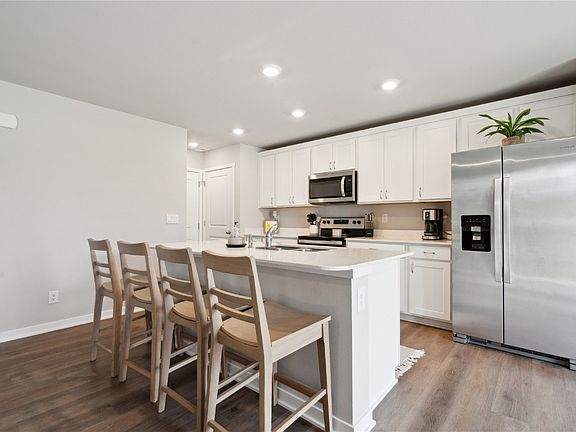 Welcome home to this well-maintained two-story end-unit townhome, offering comfort, space, and style! Featuring 3 spacious bedrooms, 2.5 baths, and a generous 2-car garage. Step inside to discover an open-concept layout, where the great room welcomes you with a cozy electric fireplace-perfect for relaxing or entertaining. A conveniently located half bath adds comfort and practicality to the main floor. The stylish kitchen features a large island and an oversized pantry, offering ample space for gathering and storage. Just off the kitchen, step out to your private patio and beautifully maintained green space. Upstairs, the spacious primary suite offers a relaxing escape with a dual-sink vanity and a spacious walk-in closet. 2 additional bedrooms, a full bath, and conveniently located laundry room complete the upper floor.