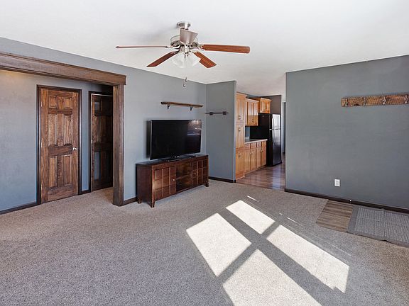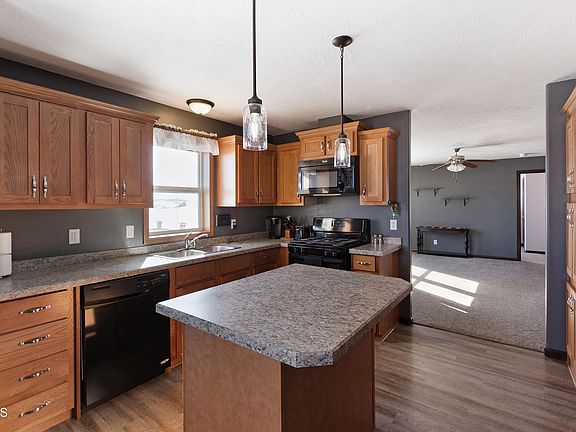 Welcome home to the wide open spaces and horse friendly hills of Wainwright Estates. Only 15 minutes from Mandan, this rural home is situated on 3.8 acres and offers gorgeous views, one level living and a sizeable garage. The 2014 manufactured home is on a permanent post and pier foundation and has been converted to a deeded property. Numerous upgrades including carpet, solid wood doors and fresh paint enhance the contemporary feel. Cooking will be a breeze in the well designed kitchen, especially with so much counter space! Bright and warm floor plan is open between the main living areas. The large master suite with en suite bath and walk-in closet will easily accommodate a king-sized bed plus all your extra furniture. You'll enjoy a panoramic view from the large deck while entertaining or grilling. An oversized garage, a few steps away, can protect three vehicles with plenty of room for projects and extra storage. There's even a parking spot adjacent to the garage, ready for your RV or boat. This home is move-in ready, so be ready to move fast, this one won't last long!