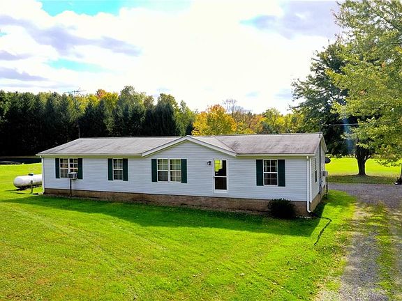 This private 3.5 acre rural property is situated in Maplewood School District right off of State Route 46. This home offers a secluded 365 foot setback with wooded front and open backyard complete with pond. Home boasts an open floor plan layout with kitchen adjacent to living spacious living room. Master bedroom with its own full bathroom. Two additional, nicely sized bedrooms and full bathroom. Mudroom/laundry space with half bathroom leads into the 28x32 garage.