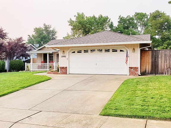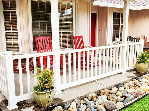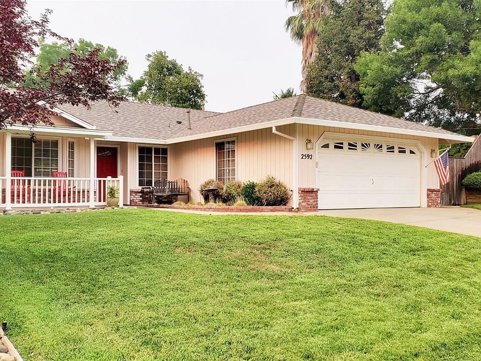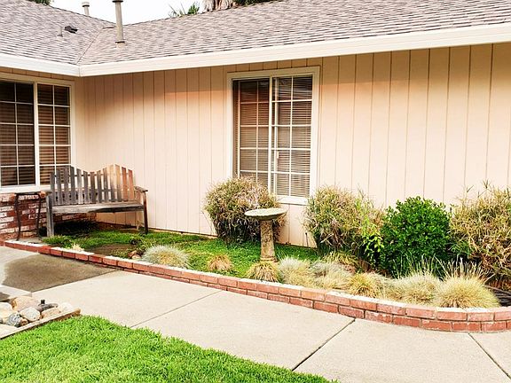 Wow what a beautiful home! Brand new roof put on just a couple of months ago, gorgeous wood flooring throughout and upgraded carpet recently installed! The kitchen is open and inviting with lots of cabinet space and the refrigerator is included with the house. High vaulted ceilings in the living area with a large bay style windows that brings in lots of natural light. The 3rd bedroom also has double doors so it can easily be used as an office, den or extra room for overnight guests. The master bedroom has a sizable walk-in closet and there is also a slider door out to the backyard. The backyard is custom designed with lots of greenery, mature trees and more, even complete with a small covered patio! Its very private and ready to enjoy. And you cant miss the cute custom front porch, even comes with the red rocking chairs to sit in and relax. No homes in this area has a custom porch like this which adds character and appeal. Gated side yard and so much more, you simply don't want to miss this one! Come and see it for yourself today.