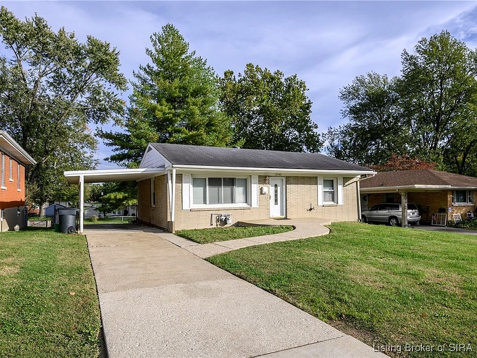 All brick ranch style home with a partially finished basement and carport in a convenient location of New Albany! Hardwood floors in the living room, dining area, and bedrooms. Bedroom #2 offers a built-in closet with drawers. The 25'x22' partially finished basement gives you a family/rec room feel featuring a bar area with sink. The concrete walls and floors are painted, but ceilings are exposed. There is also an unfinished area that houses the washer and dryer, mechanicals, plus gives you a place for storage. You'll love the fenced in backyard (except at carport opening). RECENT UPDATES: Water heater approx. 2 years, furnace approx. 7 years and central air approx. 3.5 years. A wonderful opportunity for first-time home buyers, those looking to downsize, or investors looking to add to their rental portfolio!