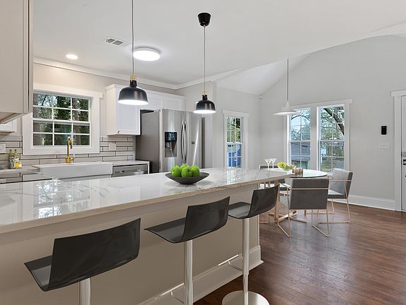 An unparalleled total home renovation, the framing is done with 2x6 studs versus the standard 2x4 studs. The home was expanded to include a spacious Master Bedroom and Bathroom Suite with two walk-in closets making it a 3 bedroom/2 bathroom home that is a complete exterior and interior renovation. All work was permitted, and the seller has City of Atlanta awarded Certificate of Occupancy. The home has all new electrical wiring/panel; plumbing, roof, windows, and siding; and, new HVAC/Furnace/Duct Work and a Smart Hot Water Heater and therefore is being sold as is. Designer level touches throughout, e.g., the chandelier in the Dining Area, the pendant lights over the Kitchen stone countertop, and the beautiful and unique light fixtures over the floating vanities in the bathrooms. The designer look continues throughout the bathrooms with beautifully tiled showers with contemporary hardware. Just as importantly is the incorporation of key safety and energy saving technology: August Entry Control and Feit Light Control applications; Google Play; Simply Safe Cameras and Door Bell; Energy Saving Recessed Lighting; Foam insulation for improved whole house efficiency; NEST Thermostat; and Motion Detection Security Lighting. This one is the complete package - Designer level interior finishes, with all new major mechanical systems and built beyond the standard construction requirements, as well as today's security and energy saving technologies! SUPRA lockbox at front door; Security System is on; Schedule showings via Showing Time.