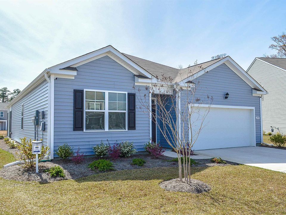 LIKE NEW 4 bedroom 2 bathroom Cali model for sale in Meridian in Market Commons. This upgraded ranch home sits on a premium lake lot and offers stunning views of the water and privacy on each side from the neighbors. Meridian is a new, growing, and highly desirable community in Market Commons offering residents superior location in Myrtle Beach and on-site amenities including a recreation center featuring an air-conditioned indoor pickle ball court, large pool oasis, hot tub, fire pit, cornhole, and a walking and biking trail. Residents can reserve the amenity center for gatherings and events. Market Commons is a premier destination for recreation, shopping, entertainment, and dining - location is prime! This home features a new extended screened-in porch overlooking the water with pull down tinted shade vinyl windows and door access to the oversized extended back patio. Home also offers a large attached 2 car garage with finished floor, irrigation system, and security system. Walking through the front door you enter into a spacious foyer area with two large bedrooms off to the left separated by a full bathroom with single sink bowl vanity and tub/shower combo. Walking through the hallway off to the right is the laundry/utility room with full size upgraded washer/dryer and overhead storage, another large bedroom, and door access to the garage. Back of the home features an open concept floorplan with tons of natural light coming through the windows and sliding door that leads to screened-in porch. The views from the living room, kitchen and dining room don't get any better. Luxury upgraded kitchen features stainless steel appliances, granite countertops, kitchen island/breakfast bar, and walk-in pantry. Oversized master bedroom is just off the living room (split bedroom floorplan) and features an overhead ceiling fan, walk-in closet, and bathroom en-suite complete with a double sink bowl vanity, walk-in shower with glass door, linen closet, and separate commode room. Home features carpet in the bedrooms, ceramic tile in the bathrooms/laundry room and upgrade vinyl wood flooring throughout the main living areas/hallways. Home is in pristine condition and shows like a model - come check out this like new cali model ranch home on a premium lakefront lot and schedule your private showing today!