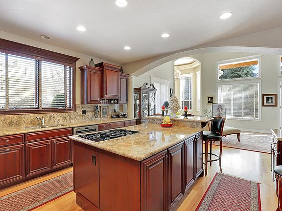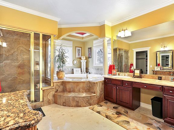 You'll love Thraemoor Estates and this one of a kind home on a cul-de-sac street with only 15 others. All brick exterior and tile roof construction. Main floor master includes 5-piece quartz bathroom with spa tub. 6 bedrooms and 5.5 bathrooms. Each room an architectural masterpiece with mountain views out front. Private, colorful backyard with retractable awning and professional landscaping in the back. New carpet and dramatic central staircase. Lower level with large family room, 2 bedrooms and a full bathroom. it's an unbelievable bargain at this price!