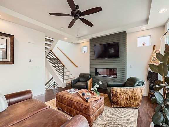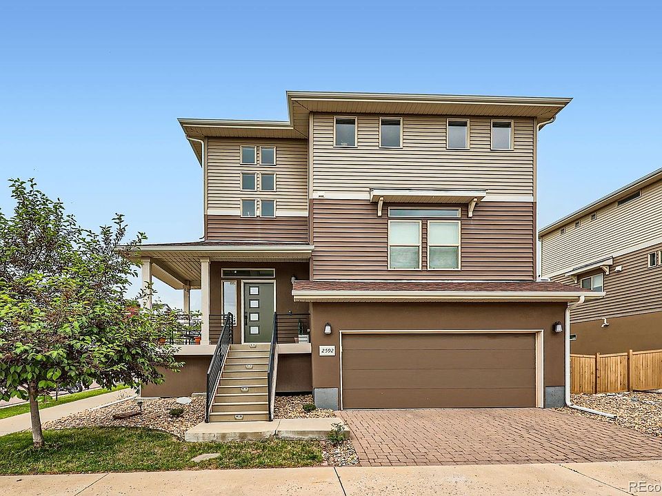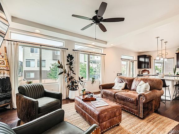 Welcome to 2592 Sweetwind Ave, Castle Rock — where comfort meets convenience in the heart of The Meadows! This beautifully maintained home sits on a desirable corner lot that backs to greenbelt trails and offers stunning views of the nearby park. Located in one of Castle Rock’s most sought-after communities, this residence delivers the perfect balance of peaceful surroundings and modern living. Step inside to find engineered hardwood floors throughout the main and lower levels, setting the tone for a warm and inviting atmosphere. The open-concept layout centers around a gourmet kitchen featuring stainless steel appliances, granite countertops, and a spacious island with bar-height seating—ideal for entertaining or casual family meals. The main floor primary suite offers a private retreat with easy access, while the adjacent family room shines with large windows, a tray ceiling, and a cozy fireplace. Upstairs, a spacious loft provides a second living area, perfect for a playroom, media space, or home gym. Two additional bedrooms and a full bathroom round out the upper level. The walk-out lower level adds even more living space, with a fourth bedroom, full bathroom, dedicated office area, and direct access to the newly sodded backyard—ready for summer BBQs and outdoor fun.