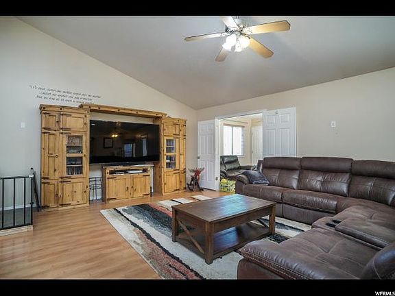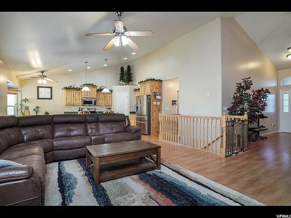 This home is a mechanics dream! You'll love the massive fully finished and painted 25 ft. wide by 45 ft. deep 6-car garage with three 220 plugs, epoxy floors, a sink, and a 6 ft. deep work pit with lighting, detached 2-car garage, shop, RV parking, and big garden area in the back. Inside the home features an open floor plan with vaulted ceilings, large great room, custom cabinetry, stainless steel appliances, corner pantry and island in the kitchen, big laundry room with storage and countertop space, big master bedroom with vaulted ceilings, walk-in closet, and private bath with a double vanity and separate tub/shower, spacious bedrooms, double vanity in the main floor bathroom, 9 ft. ceilings in the basement and 4th bedroom could be used as an office. Sq. footage per tax data records; Buyer to verify all information.