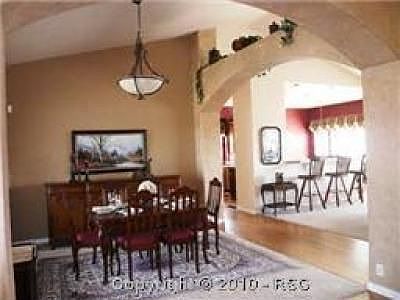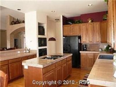 AWESOME STUCCO RANCHER LOCATED ON THE 2ND TEE BOX OF PINE CREEK GOLF COURSE WITH HUGE DECK AND SPECTACULAR MOUNTAIN AND PIKES PEAK VIEWS. HIGH OPEN VAULTS AND WINDOWS WITH HARDWOOD FLOORS AND HICKORY CABINETS WITH GRANITE TILE COUNTERS GAS STOVE AND HOT WATER DISPENSER. CUSTOM INTERIOR PAINT FULLY FINISHED WALKOUT BASEMENT WITH CEILINGS. HUGE STOVE WALL FIREPLACE HUGE BEDROOMS AND CLOSETS, CAT 5 SURROUND SOUND, CUSTOM BLINDS DUAL SHOWER MASTER BATH PLUS CENTRAL A/C, HUMIDIFIER, AND ALARM SYSTEM.