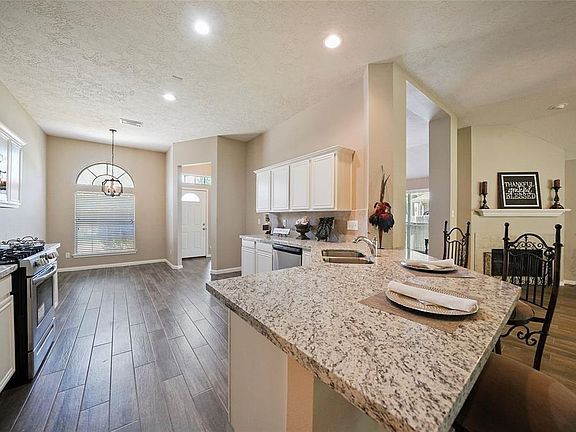 Gorgeous from the moment you enter and completely remodeled with hardwood tile throughout, fresh designer paint, recessed can lighting, new hardware, new frieze carpet and pad, huge kitchen with chair height breakfast bar, granite counter tops, under mount sink, brand new stainless appliances, an abundance of cabinet and counter space, light and bright breakfast area, private study with french doors, elegant dining, nice master suite with garden tub and double vanity, guest rooms are nice size and have walk in closets, cover back patio and a yard big enough for a pool! Brand new park just up the street with covered area, basket ball, play ground, checker tables, corn hole, etc. Make this one a top priority, a true MUST SEE! RECENT ROOF and HVAC system